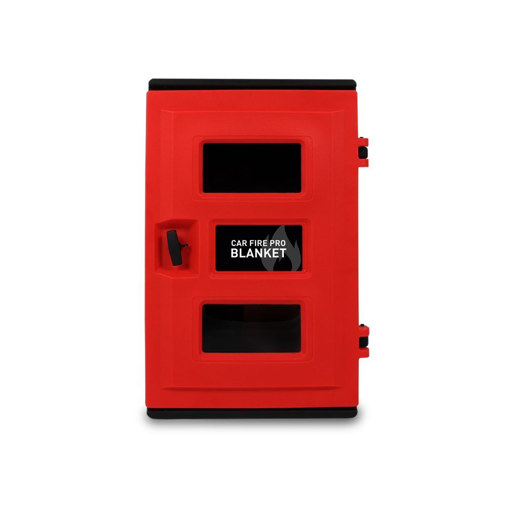 ARMARIO DE ALMACENAMIENTO PARA MANTAS IGNÍFUGAS El armario para mantas apagafuego de Texfire está diseñado para almacenar las mantas ignífugas utilizadas en la extinción de incendios de vehículos. Su robusta estructura proporciona una gran resistencia a impactos y la parte trasera está marcada con 4 puntos de fijación para atornillarlo a pared y soportar el peso de la manta. Está disponible en dos versiones: • Fija, para instalación mural. • Móvil, equipada con ruedas para facilitar su transporte. El armario está fabricado con plástico PVC y sus juntas están selladas, protegiendo las mantas frente a condiciones climáticas adversas, polvo u otros agentes externos. Este armario es ideal para su instalación en parkings, estaciones de carga, talleres mecánicos o entornos industriales donde se requiere un acceso rápido y seguro a mantas ignífugas en caso de emergencia. Las medidas y pesos de los armarios son: • Armario sin ruedas: 950 x 445 x 280 mm y 9 kg. • Armario con ruedas: 1000 x 540 x 345 mm y 9,5 kg. • Armario para manta PRO: 850 x 565 x 375 mm y 12 kg.