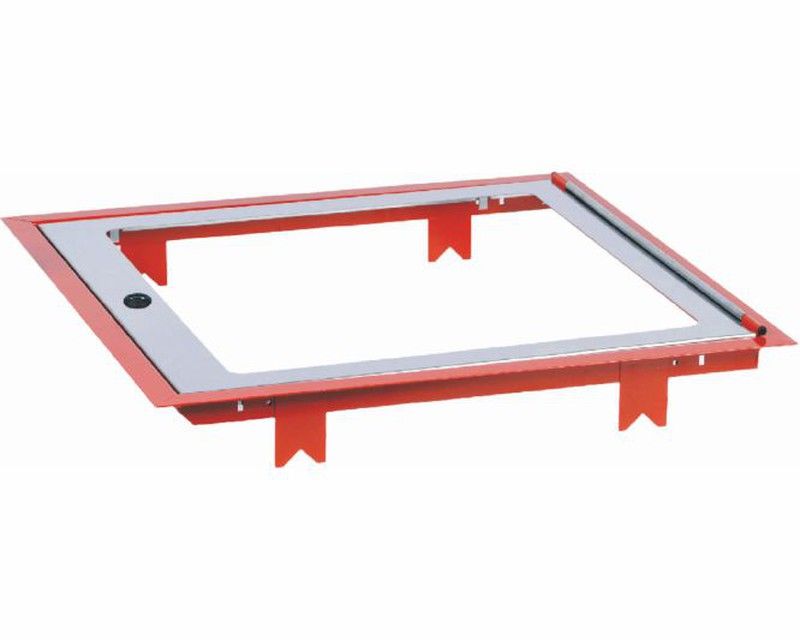 Cadre d'encastrement pour colonne sèche. Dimensions du cadre, Hauteur = 633, Largeur = 630 mm. Finition du cadre : Peinture Polyester RAL 3000. Porte encastrée pour vitrage. (Verre inclus) Dimensions du verre : 560 x 520 x 3 mm. Finition de la porte : Acier inoxydable moleté AISI 430. Fermeture chapeau melon de forme carrée.