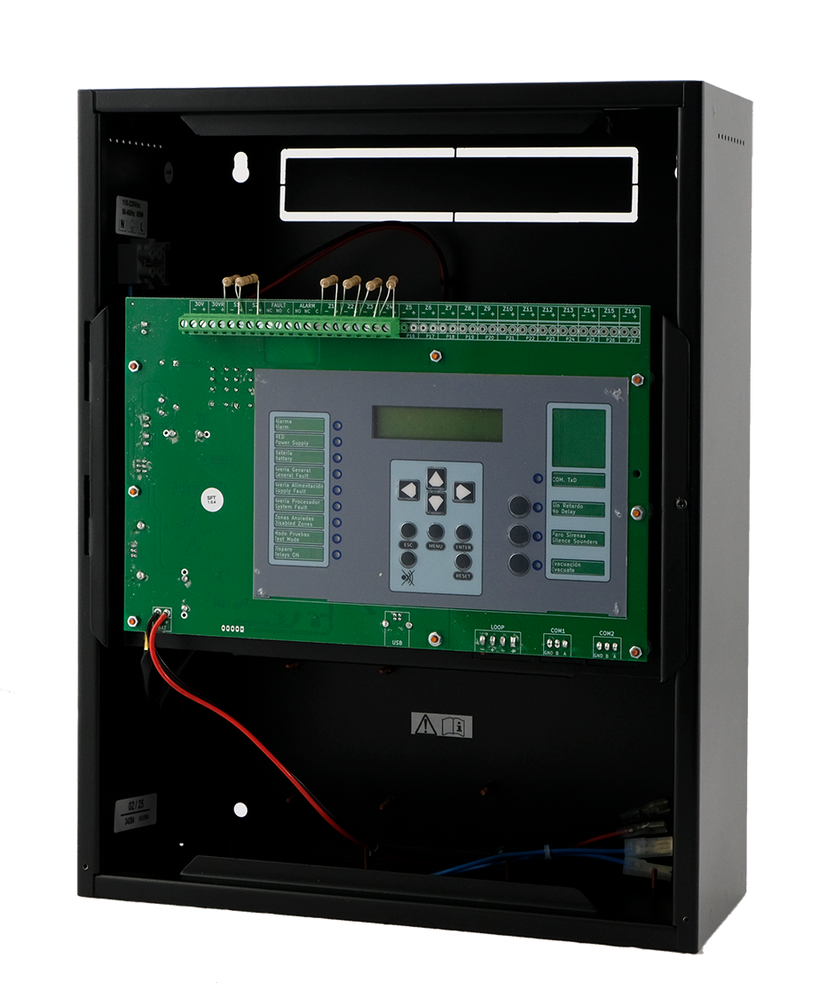 Centrale de détection et d'alarme incendie automatique conventionnelle, jusqu'à 16 zones et 16 sorties relais configurables. Cette centrale dispose de zones et de sorties relais indépendantes. Les zones peuvent être étiquetées numériquement via l'écran.