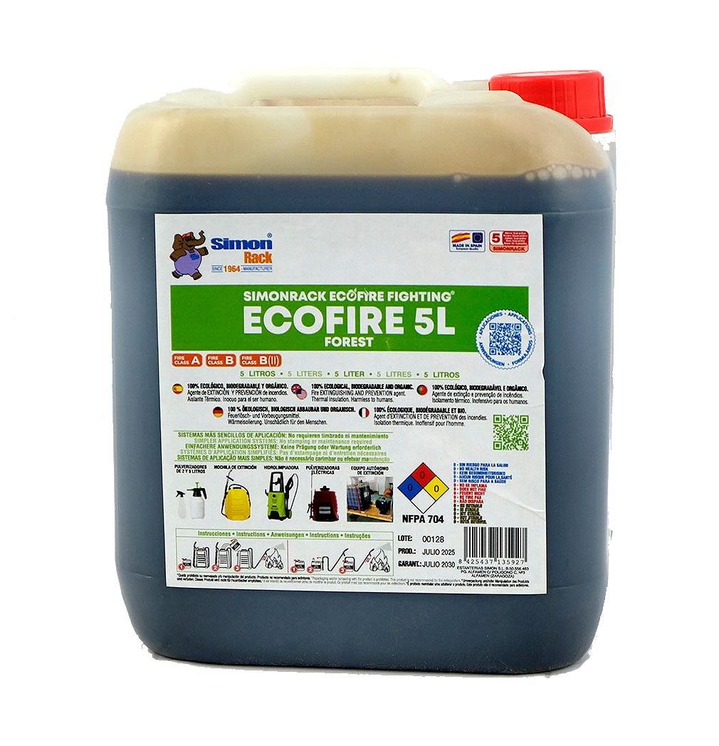 Aucun des produits testés à ce jour ne possède toutes les qualités de cet extincteur. Ecofire éteint non seulement les incendies, mais les substances libérées au cours du processus ne sont pas toxiques pour l'environnement. De plus, les composants d'Ecofire sont totalement inoffensifs, car il s'agit d'un produit 100 % biologique. Son procédé de fabrication est également sans impact sur l'environnement.