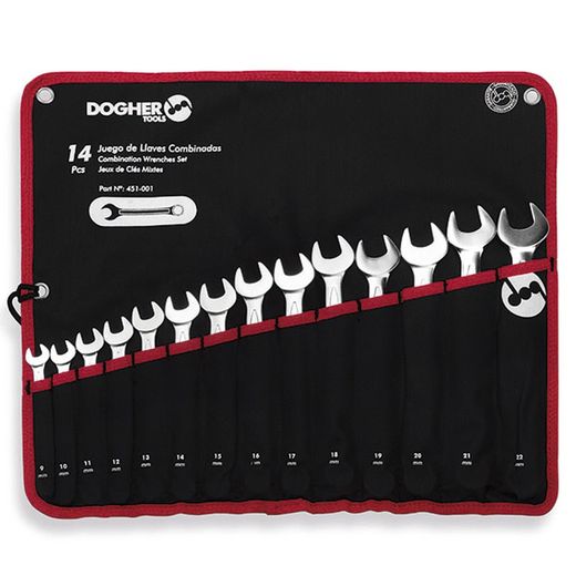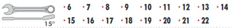 Ensemble de clés combinées dans un sac en nylon avec 17 pièces. Outil professionnel pour les travaux de serrage sur éléments vissés au moyen d'une vis ou d'un écrou, principalement à tête hexagonale.