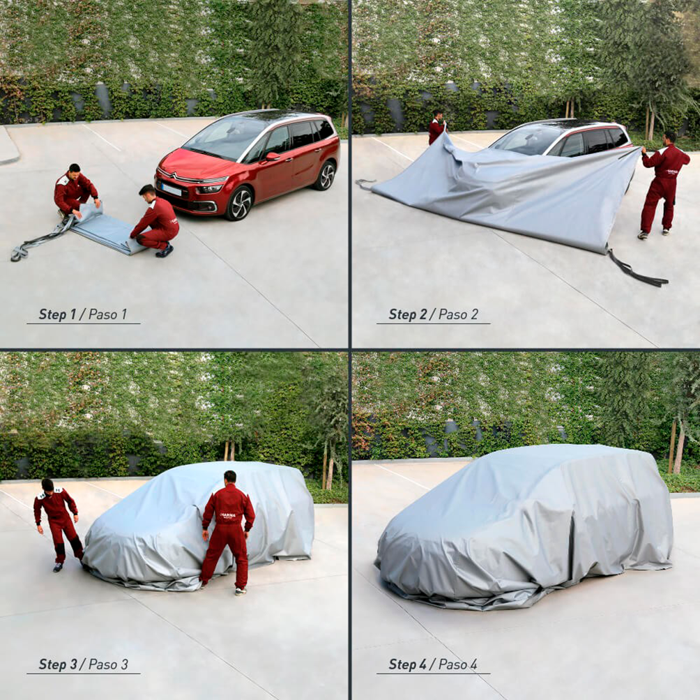 MANTA CONTRA INCENDIOS PARA COCHES DE GASOLINA, DIESEL Y ELÉCTRICOS La manta apaga fuego para coches de Texfire es una manta diseñada para extinguir incendios en vehículos de combustión, gasolina o diésel indistintamente y también para contener las llamas en coches eléctricos. Con una superficie de 10x8 m (80 m²) esta manta apaga fuego permite cubrir la mayoría de los coches en caso de incendio, incluso SUV’s y todoterrenos. Para su correcta colocación y por motivos de seguridad, en caso de incendio se recomienda la intervención de al menos 2 personas. La manta apaga coches tiene un peso aproximado de 28 kg. Incorpora 4 agarres para facilitar su colocación, 2 de color oscuro en el costado derecho y 2 de color claro en el costado izquierdo. La manta ignífuga apaga fuego para coche de Texfire está fabricada con un tejido de fibra de vidrio recubierto por ambos lados con un polímero especial para altas temperaturas. Este tejido está certificado con la norma UNE EN 13501. La eficacia de las mantas apaga coches reside en su capacidad para controlar y sofocar las llamas. En los coches eléctricos, la manta ayuda a mantener el incendio bajo control y facilita el trabajo de los cuerpos de seguridad, pudiendo sofocar el incendio según el tipo de batería eléctrica instalada. El uso de esta manta apaga fuegos tiene múltiples ventajas frente a otros sistemas contra incendios para apagar las llamas en un coche, como los extintores de polvo o las mangueras de agua: • No es necesario tener una toma de agua o depósito cerca. • Solo son necesarias 2 personas para apagar un coche en llamas. • Se puede almacenar fácilmente, no caduca. • No es necesaria ningún tipo de formación antiincendios. • Evita que el fuego se propague hacia vehículos cercanos o instalaciones circundantes. • Contiene los humos tóxicos derivados de la combustión. • Contiene los humos opacos, lo que permite una perfecta visión y control de la situación. • Evita que las instalaciones, como parkings subterráneos, se dañen con el humo u otras partículas incandescentes en suspensión. • Evita que los restos del incendio se filtren por el alcantarillado, como si pasa con el uso de agua. • No deja ningún rastro de partículas en suspensión o depositadas sobre superficies como si ocurre con los extintores. • Puede usarse cerca de cuadros eléctricos u otras instalaciones sensibles al agua. • Limita en gran medida los daños causados por el siniestro. • Facilita la actuación de los bomberos tanto en medios como en tiempo. La manta apaga coches se entrega dentro de un petate textil para facilitar su transporte y almacenamiento. Como opción, Texfire ofrece: • Un petate más resistente a la abrasión, impermeable y estanco, y con mayor resistencia a los esfuerzos mecánicos. • Un armario rígido de montaje a pared, con juntas de goma que impiden la penetración de agua y polvo. Apto para interior y exterior.