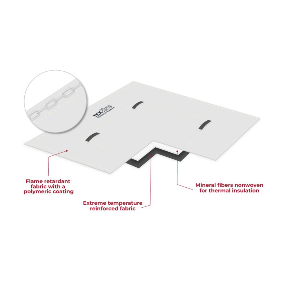 MANTA IGNÍFUGA MULTICAPA PARA CONTROLAR INCENDIOS EN BATERÍAS DE LITIO La manta ignífuga para baterías es un elemento de seguridad especialmente desarrollado para controlar el fuego y las fuertes explosiones que se producen cuando las celdas de una batería de litio entran en combustión. Esta manta ha sido diseñada con un refuerzo central para poder utilizarla en contacto directo con las baterías en caso de incendio. El refuerzo central de esta manta para baterías está compuesto por una estructura multicapa, con aislamiento térmico y tejidos reforzados, que en conjunto pueden soportar temperaturas de hasta 1.500ºC, gases inflamables, múltiples explosiones, impactos de materiales incandescentes y salpicaduras de ácidos u otras partículas corrosivas. Alrededor del cuerpo central hay una capa de tejido ignífugo que incorpora un contrapeso perimetral para aportarle estabilidad y evitar que la manta se levante por la presión de las deflagraciones. Este tejido perimetral, a la vez, disminuye el alcance de las llamas y ayuda a contener los materiales que puedan salir proyectados. También contiene una parte de los humos y gases liberados durante la combustión de las celdas. Texfire ha desarrollado esta solución especialmente para sectores en los que se manipulan baterías de litio, como por ejemplo las empresas que fabrican baterías, talleres de reparación e intercambio, hubs de carga, empresas de alquiler de bicicletas o motos eléctricas, empresas de reciclaje de baterías, etc. La manta mide 2x2 metros e incorpora 4 asas en la zona central para manipularla con facilidad e incluso utilizarla como escudo ignífugo. Los contrapesos perimetrales son de acero inoxidable y toda la manta está confeccionada con hilo ignífugo y reforzado. La manta incluye un petate impermeable para facilitar su transporte y almacenaje.